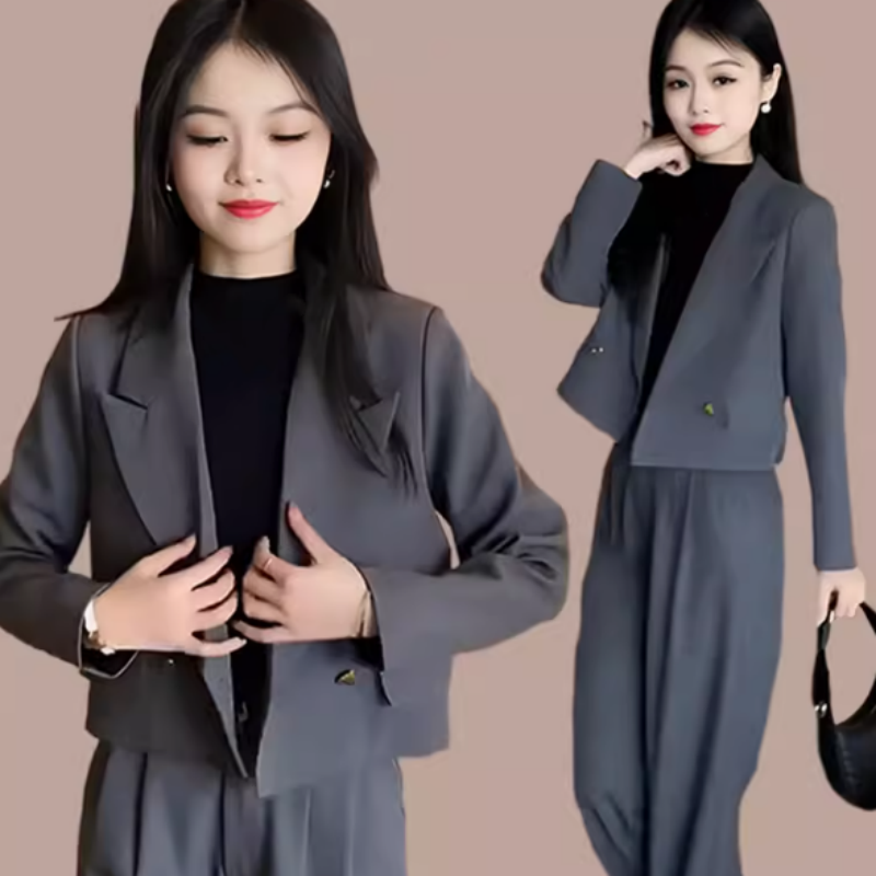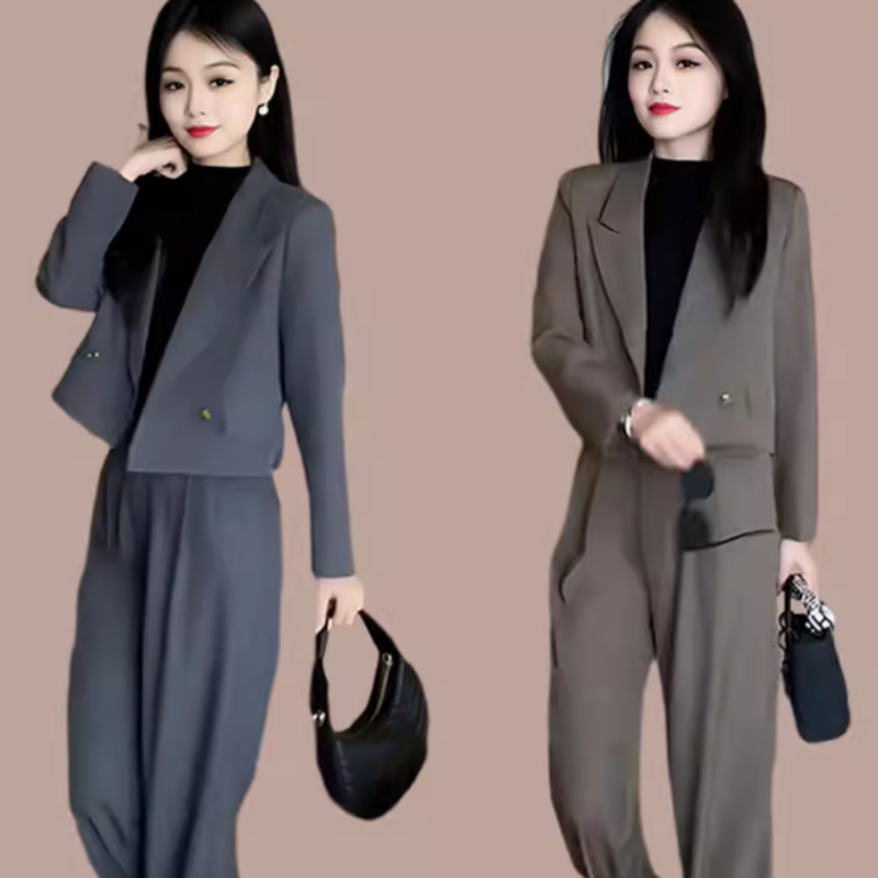 TWO-PIECE SET DESIGN: This suit set includes a loose-fit short top and long wide-leg pants, creating a fashionable silhouette that flatters different body types. The short top offers a relaxed and comfortable fit, while the long wide-leg pants exude sophistication and provide freedom of movement.
