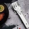 MULTI-FUNCTIONAL 3-IN-1 DESIGN: Combines fork, spatula, and tong functionalities in one compact tool that easily detaches for individual use. The innovative clip mechanism securely holds food while flipping, serving as both a gripping tool and serving utensil for maximum grilling efficiency.