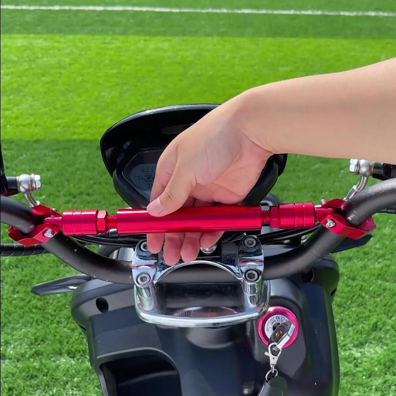 DURABLE AIRCRAFT-GRADE ALUMINUM: Crafted from high-strength aluminum alloy, the handlebar stabilizer is lightweight yet exceptionally sturdy, offering long-lasting durability and resistance to wear and tear in all riding conditions.