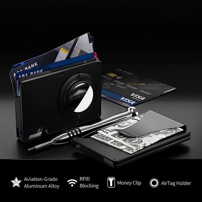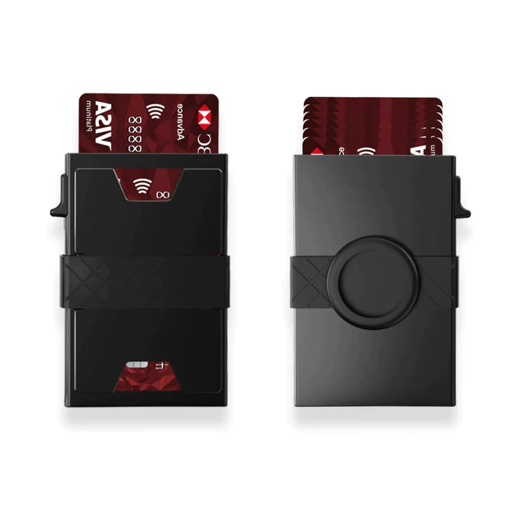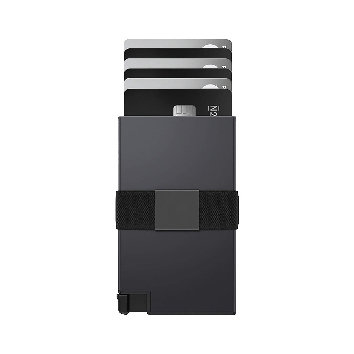 - SLIM STORAGE: Looking for a space saving wallet? Store up to 12+ cards in this push button wallet, fitting 4-6 in the RFID blocking compartment and up to 6 more in the expandable backplate while keeping a slim profile. The Aluminum Cardholder quick access wallet is compact and slim without sacrificing storage space.