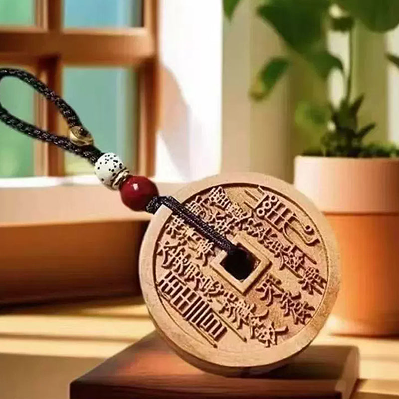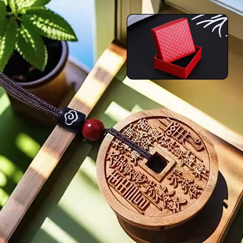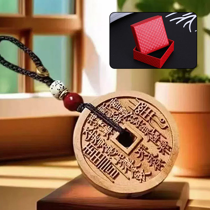 GENUINE ANTIQUE COPPER COIN PENDANT: This pendant features an authentic, aged copper coin adorned with intricate Mountain Ghost patterns and ancient inscriptions, representing centuries-old Chinese spiritual traditions. A true symbol of protection and luck.