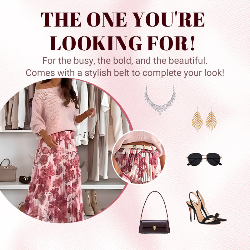 🌸Crew Neck Top & Printed Belted Skirt Set🌸