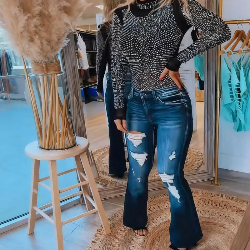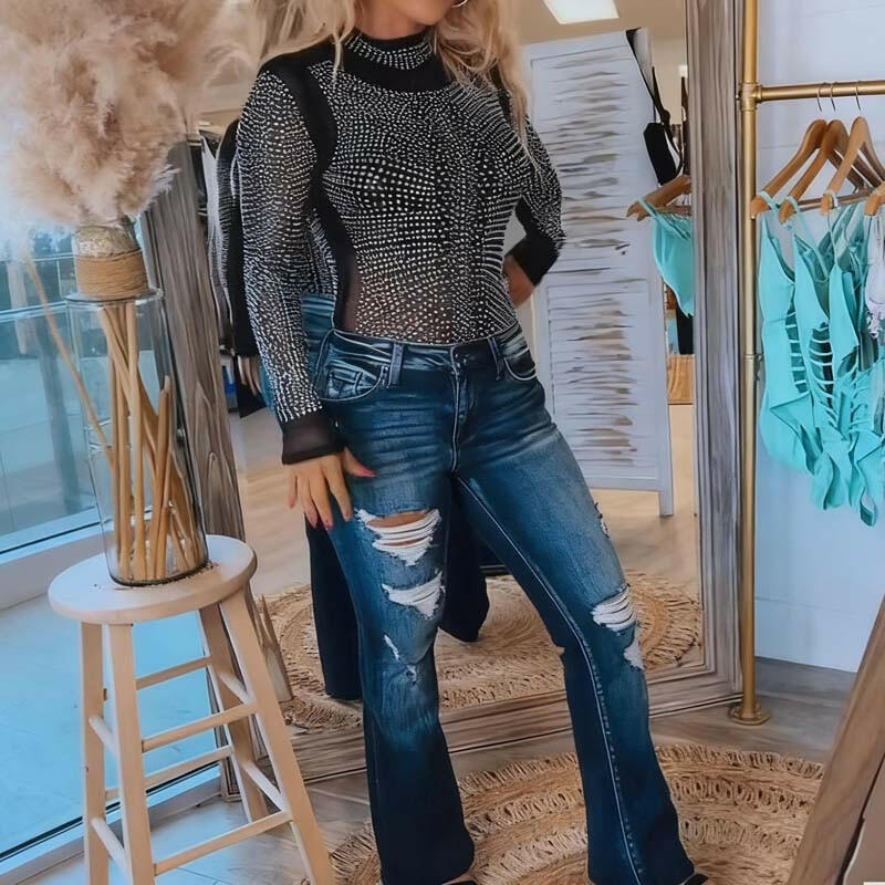 Package Includes: 1×Elegant Slim Fit Top With Rhinestone Details
