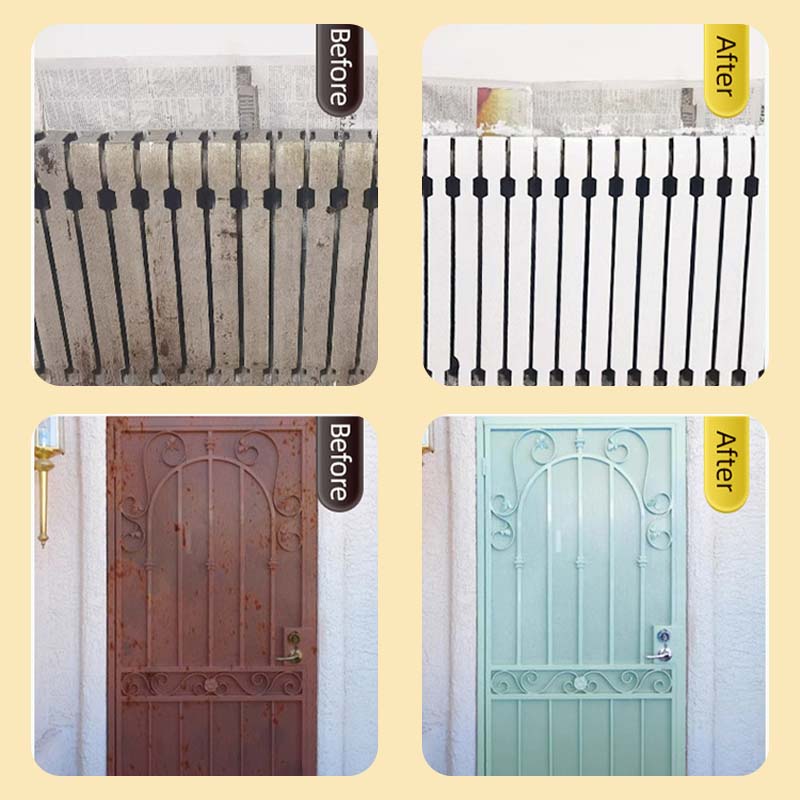 RUST-TO-SHIELD TECHNOLOGY – Instantly transforms corroded surfaces into durable, protective layers! This paint reacts with rust, converting it into a stable compound while sealing out moisture. No sanding needed—apply directly to stop decay and prevent future oxidation. Ideal for gates, tools, or car parts!