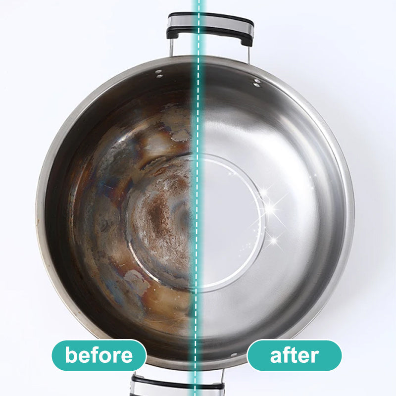 POWERFUL STAIN REMOVER - This pot bottom cleaner is designed to tackle even the toughest stains and burnt-on residue. It effectively removes stubborn marks, restoring the original shine of your pots and other cookware.