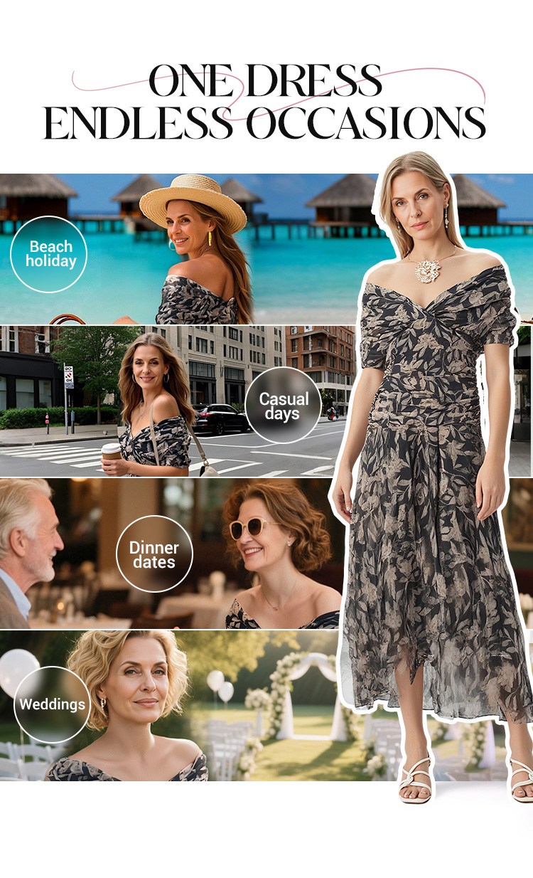 ⏳Time-limited Special⏰ Women's Off-the-Shoulder V-Neck Printed Dress