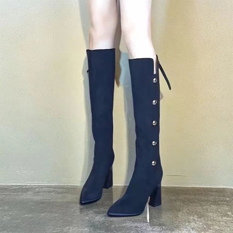 Package Includes: 1 * Pointed Toe Chunky Heel Warm Long Boots