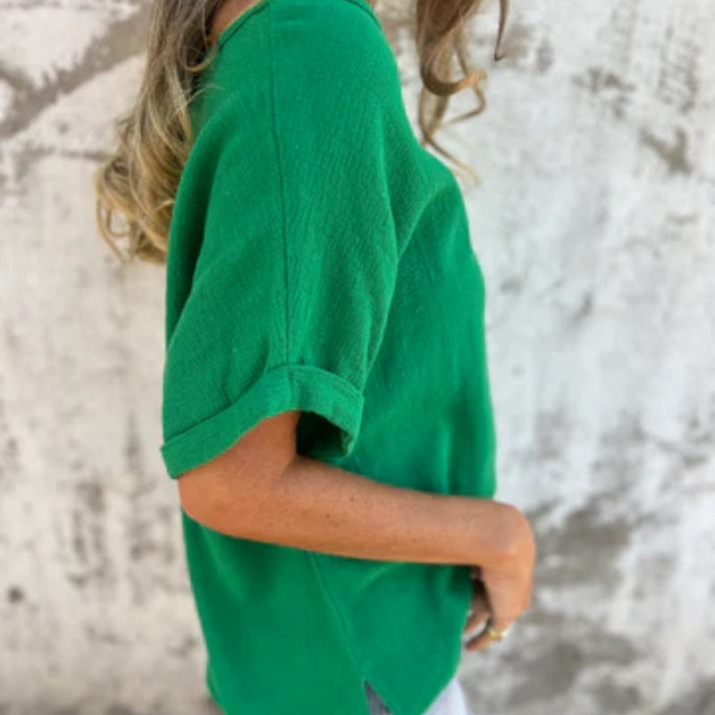 LOOSE FIT FOR STYLE: Designed with a relaxed cut, this top drapes beautifully, offering a comfortable and stylish look for all body types. The round neck provides a classic, easy-to-wear silhouette.