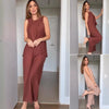 VERSATILE OCCASION WEAR: Whether you're heading to the office, a casual meet-up, or a special event, this set adapts effortlessly to any occasion. Its timeless design and neutral brown color make it easy to pair with accessories or layers.