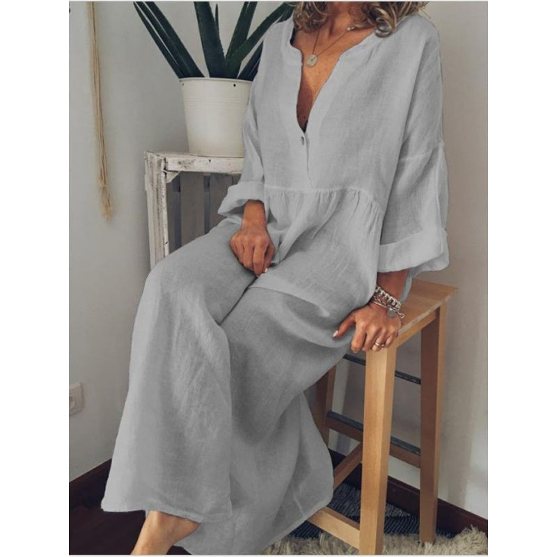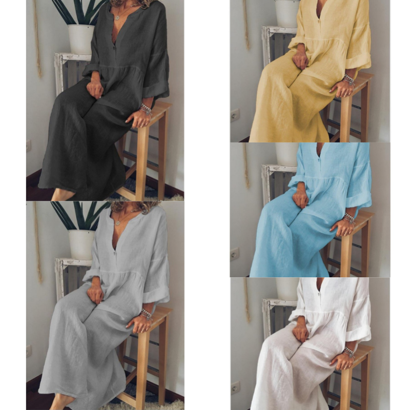 1 x Women Summer Cotton Linen Large Swing Loose Dress