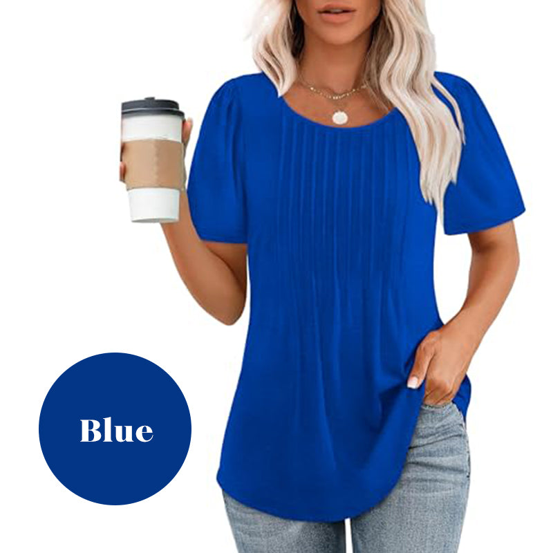1 * Women's Summer Round Neck Short Sleeve Pleated T-Shirt