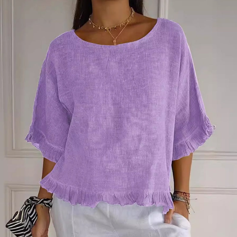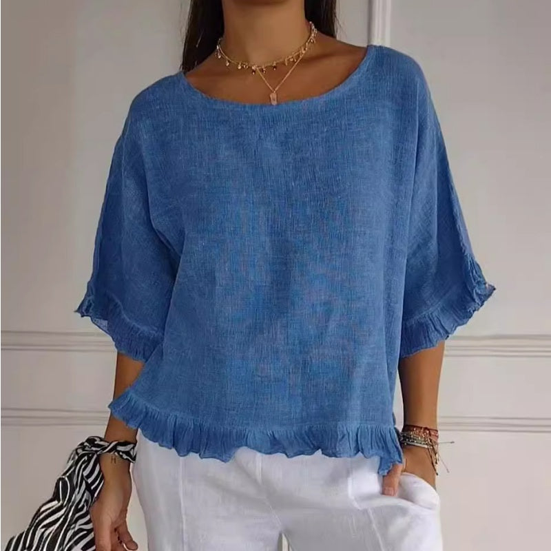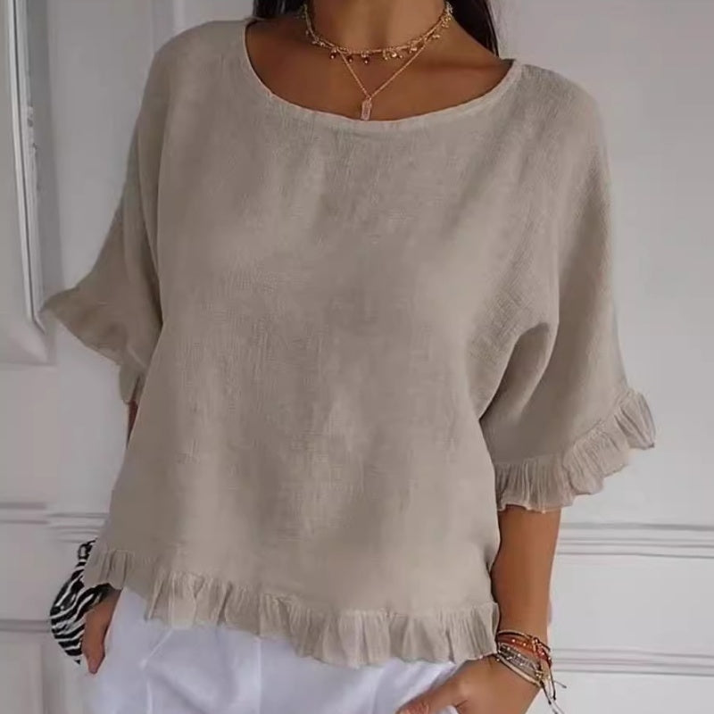 ELEGANT RUFFLE DETAILING: Features charming ruffle accents on the sleeves and hem, adding a soft, feminine touch to your outfit while elevating your casual look.