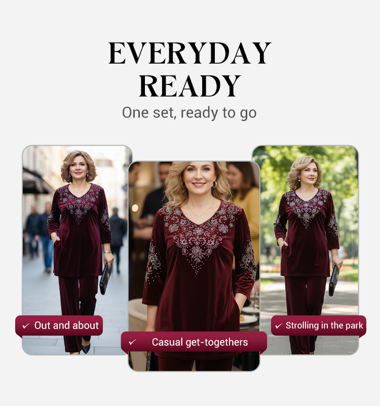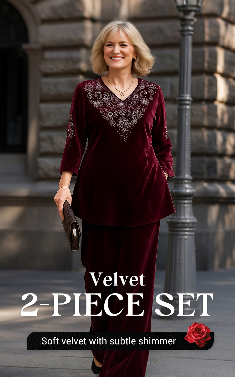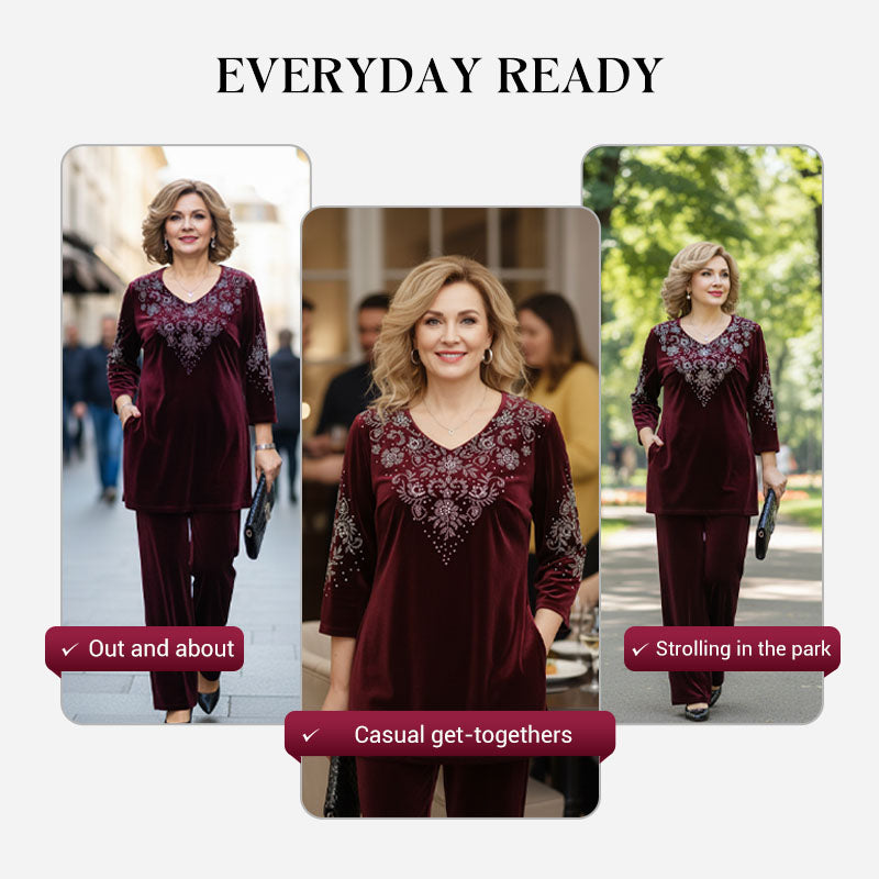 ⏳Time-limited Special⏰Women's Velvet Rhinestone Top & Pants Set