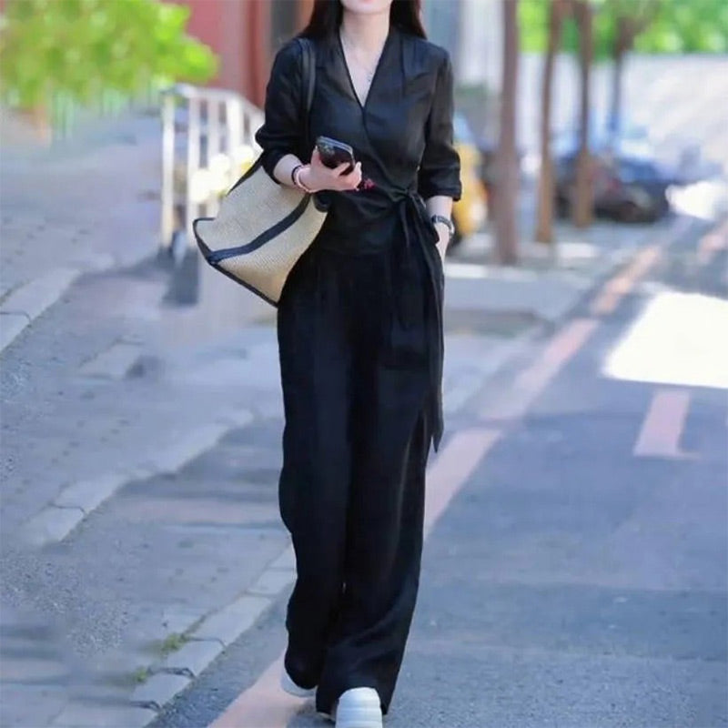 FLATTERING WRAP V-NECK BLOUSE: The blouse features a stylish V-neckline with a wrap design that enhances your silhouette, offering a sophisticated and feminine look for any occasion.